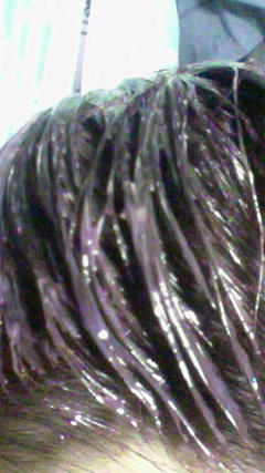 今髪を染めてる最中です。すげぇ、紫で気持ち悪い(笑)